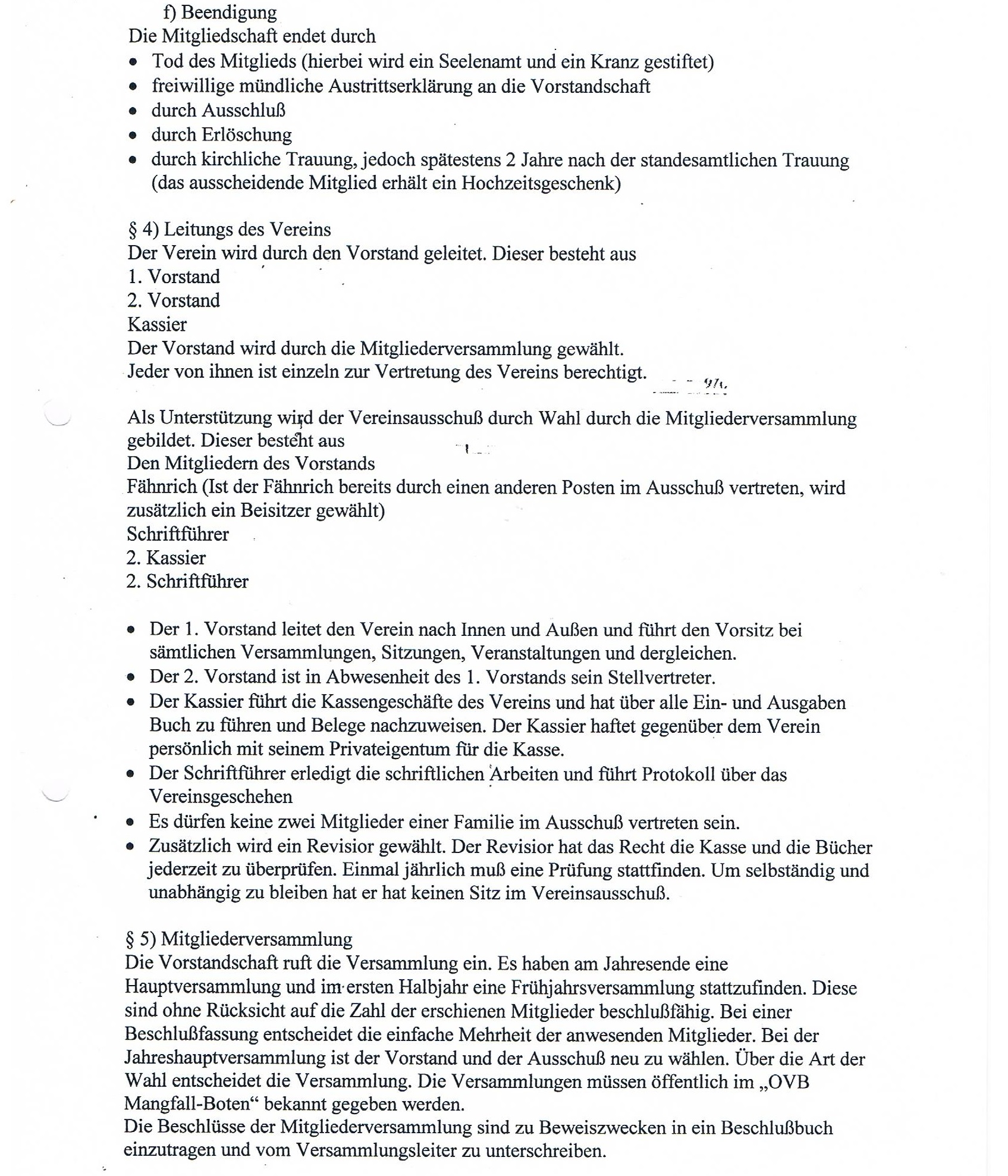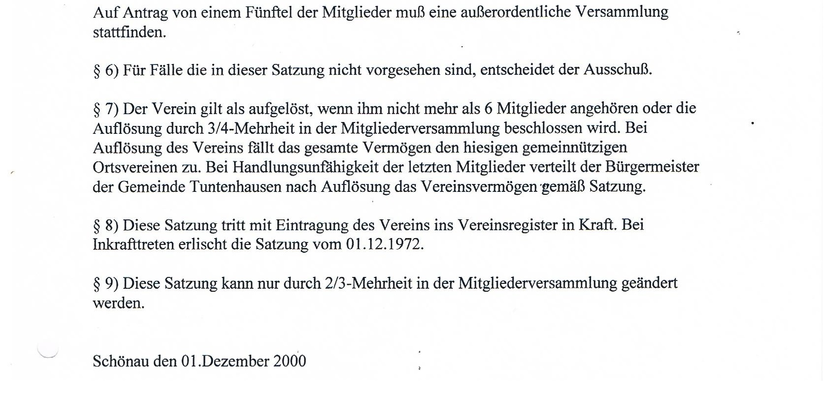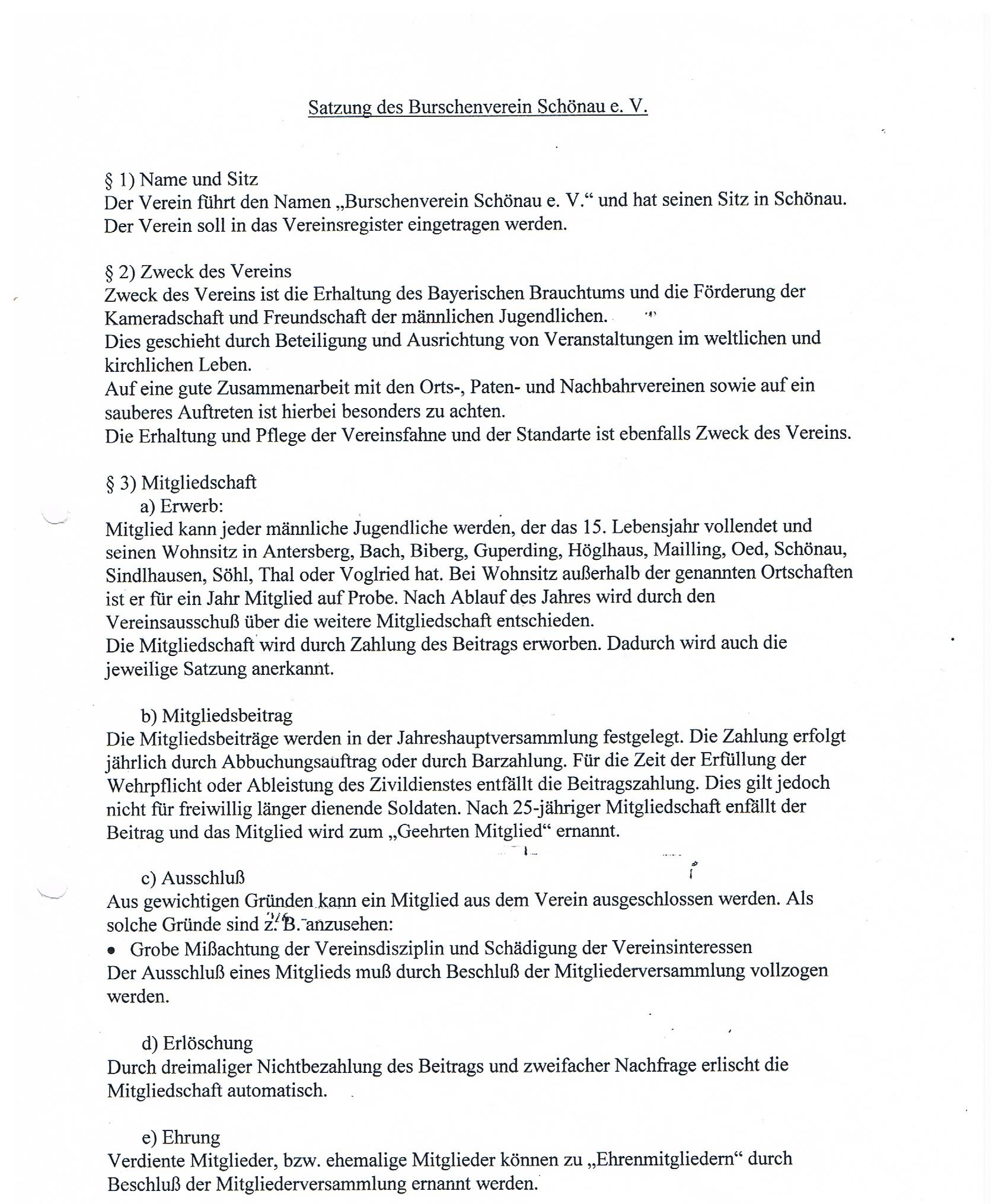 Die Satzung des Burschenverein Schönau e. V.